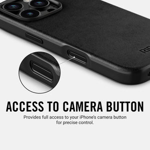Full-grain leather in Midnight Black; MagSafe ready; protective, slim.
